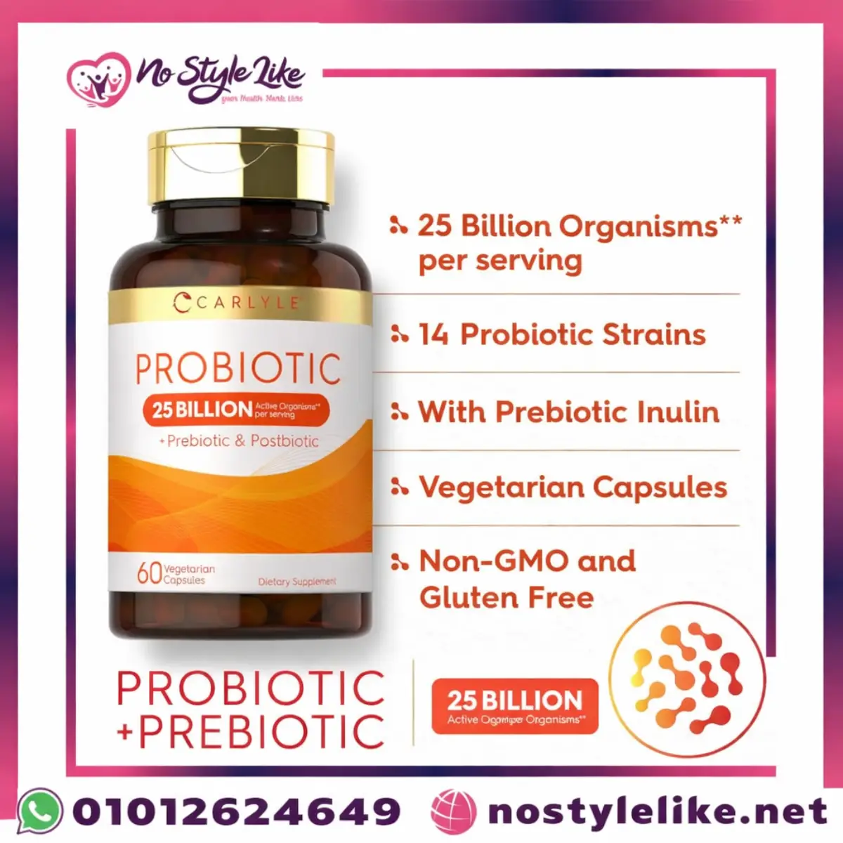 Product Name Carlyle Probiotic 25 Billion with Prebiotic & Postbiotic