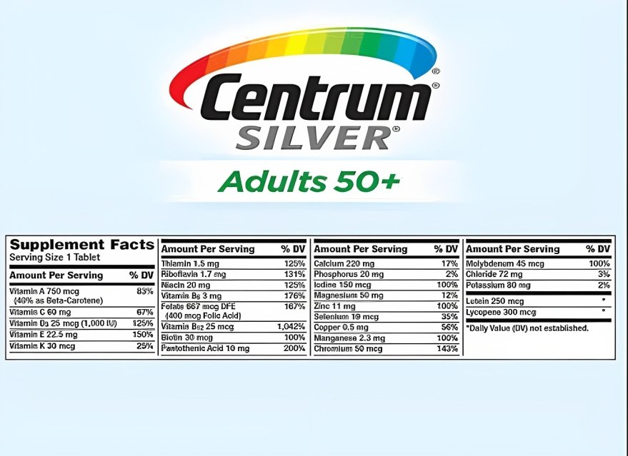 مكونات Centrum Silver lutein من الفيتامينات: