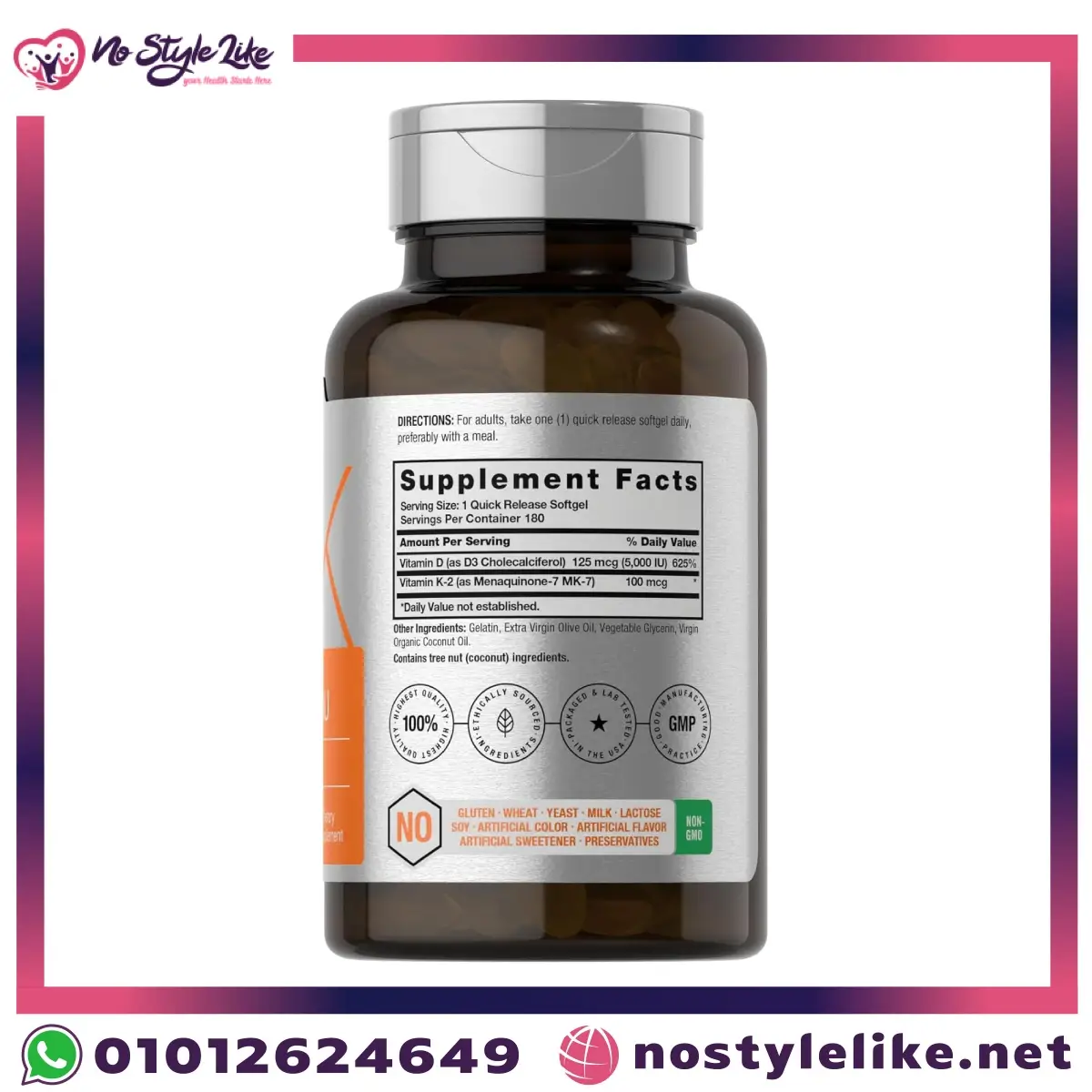 | Strength | Vitamin D3 5000 IU + Vitamin K2 (MK-7) 100 mcg |