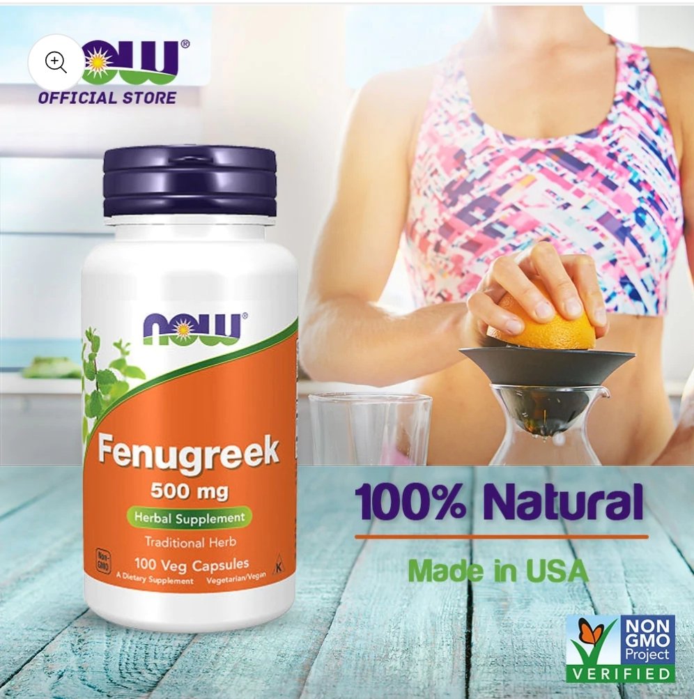 NOW® Fenugreek 500 mg 100 Veg Capsules كبسولات الحلبة منشط للخصوبة وإدرار الحليب