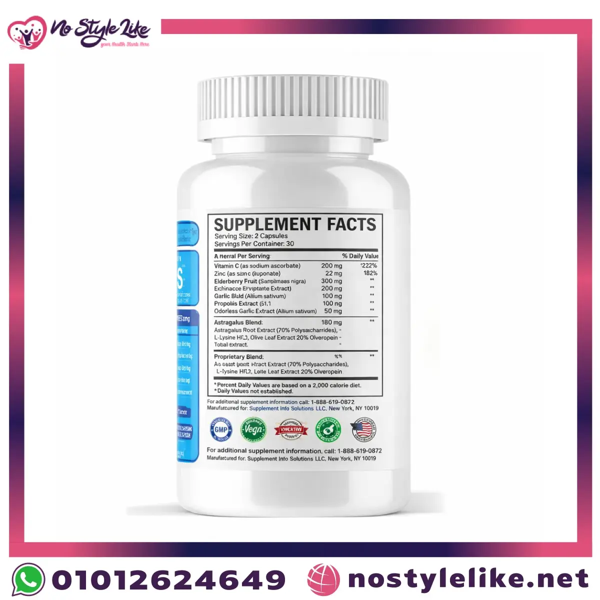 | الكمية / الحجم | 120 كبسولة نباتية (Veggie Capsules) |