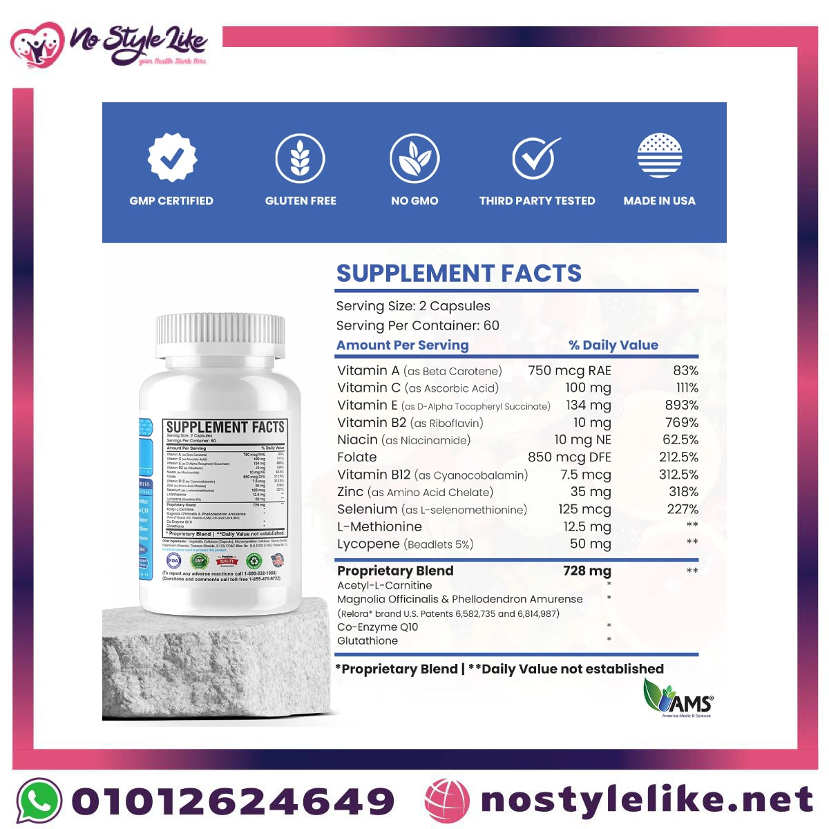 دواء MFS Plus للرجال إم إف بلس لتقوية الحيوانات المنوية – AMS فيتامينات لزيادة الخصوبة عند الرجل لحياة زوجية سعيدة