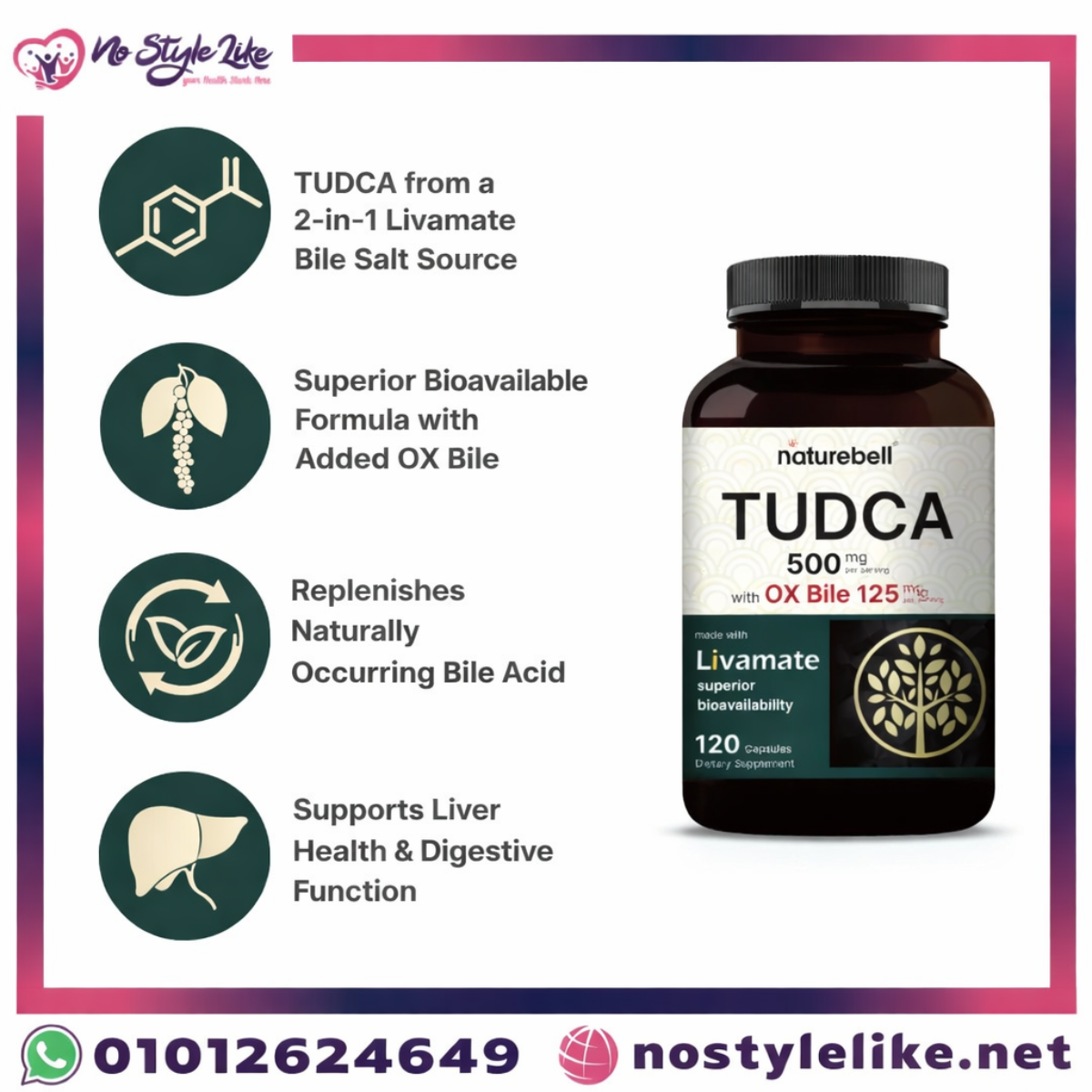 TUDCA 500mg with Ox Bile 125mg تودكا مع اوكسي بيل مكمل غذائي وليس علاجًا طبيًا.