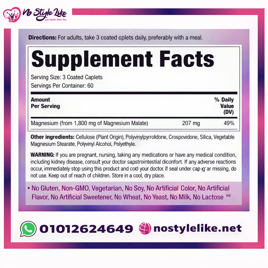 | الاسم | ماغنسيوم مالات Magnesium Malate 1800 mg |