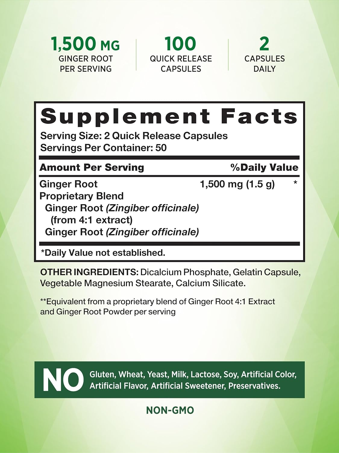 مكونات المكمل الغذائي Nature’s Truth Ginger :