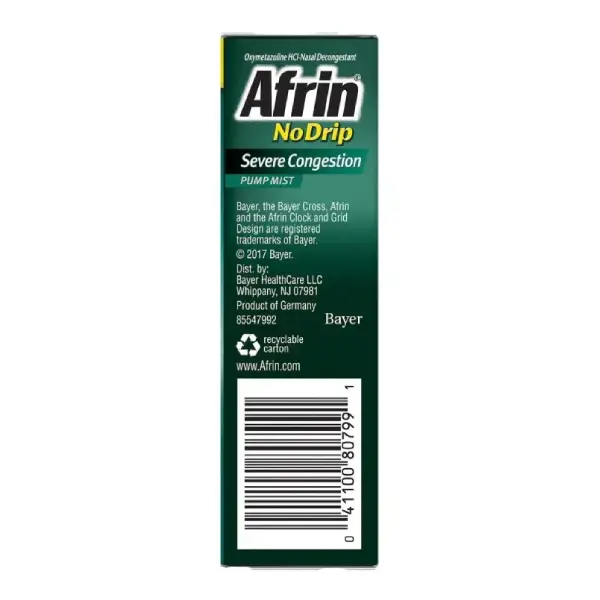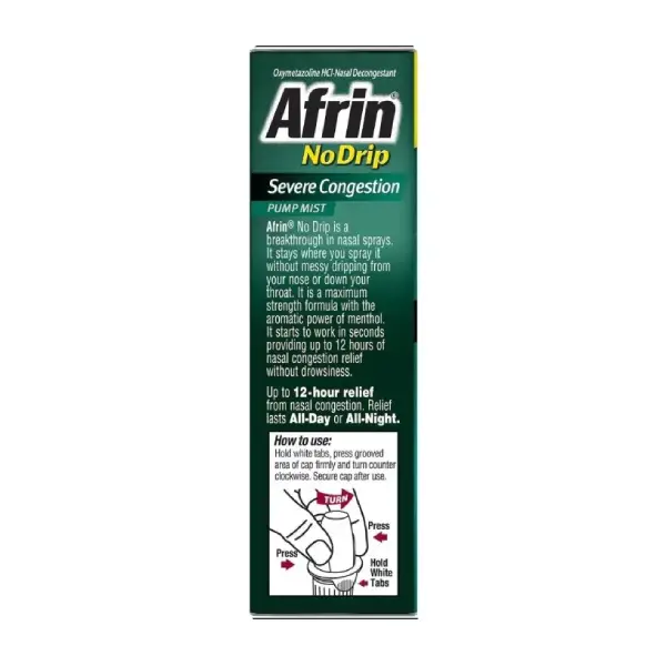 يعد منتج afrin 20 ml two bottles no drip من احد الادوية المخصصة لعلاج حالات احتقان الانف الحاد او الشديد وانسدادها ويأتي المنتج على هيئة بخاخ بدون تنقيط سريع المفعول .