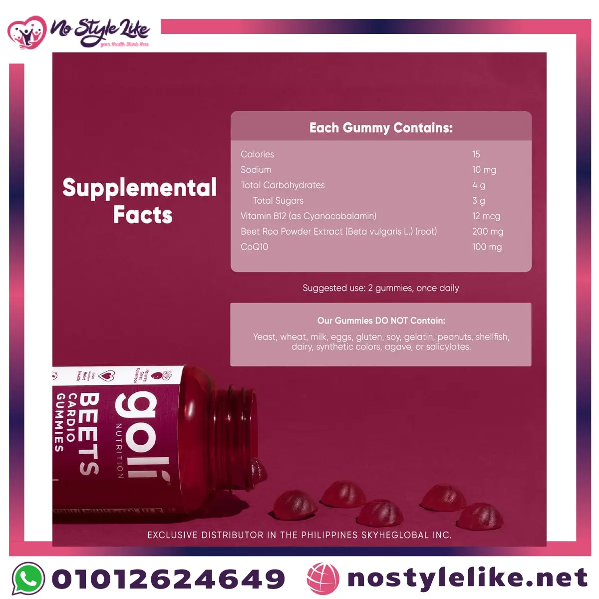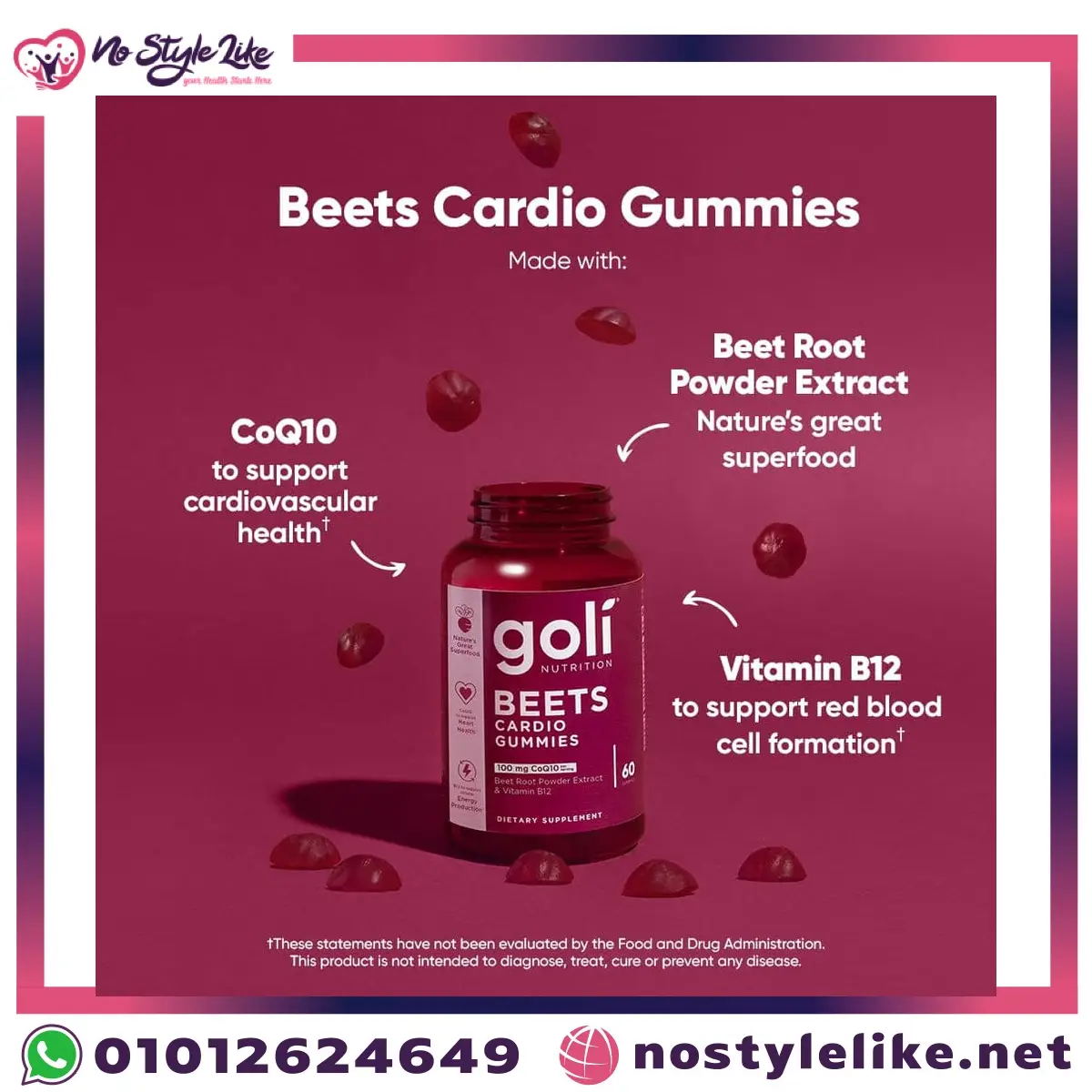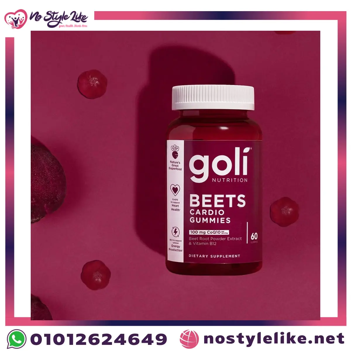 Goli Beets Cardio Gummies – CoQ10 + Vitamin B12 + Beet Root | جولى بيتس كارديو جاميز افضل مكمل غذائي فيتامينات علكة (كو انزيم كيو 10 – فيتامين b12 – مستخلص الشمندر الأحمر) لدعم صحة القلب والدورة الدموية