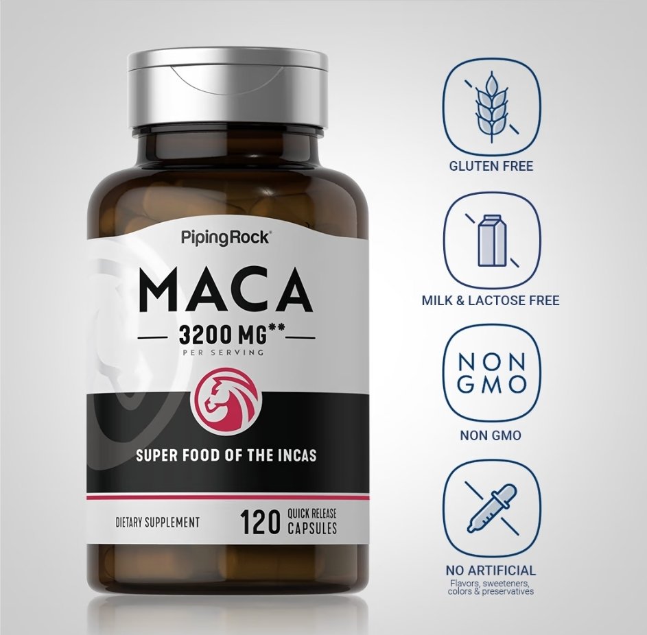 Piping Rock Maca 3200Mg 120 Quick Release Capsules عشبة الماكا لدعم الصحة الجنسية للرجال والنساء