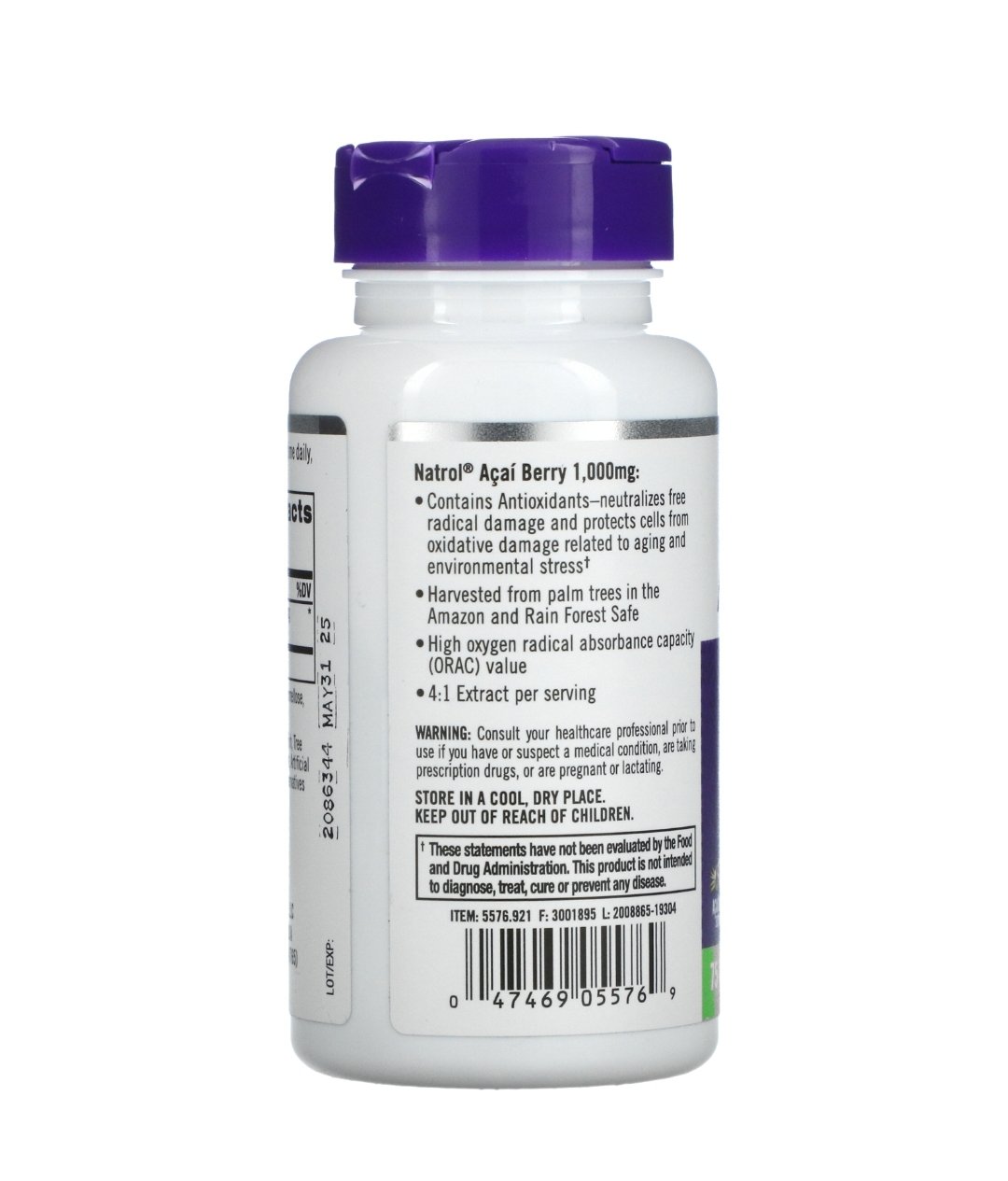 Natrol Acai Berry 1000 mg Antiosidant Protection 75 Veggie Capsules مكمل غذائي لفقدان الوزن