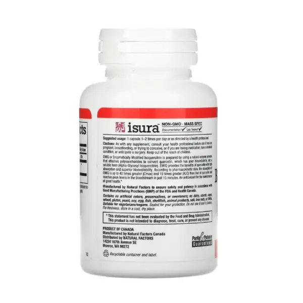 مكونات كبسولات Natural Factors EMIQ Bioactive Quercetin