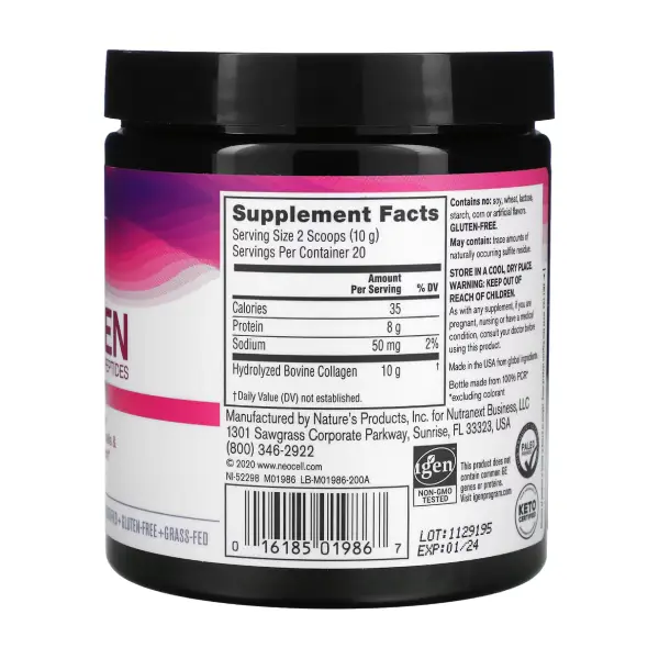 NEOCELL Super Collagen مكمل غذائي يحتوي على مادة الكولاجين بتركيز 200 جم ومادة الكولاجين هي واحدة من أهم المكونات الطبيعية الضرورية لصحة وسلامة جسم الإنسان وذلك لأنها تدخل في العديد من مكونات بناء الجسم البشري ولذلك فهي مفيدة وضرورية للشعر والبشرة والجلد والأظافر والغضاريف ؛ حيث يعرف الكولاجين على أنه البروتين الأساسي في الأنسجة الضامة في العضلات والجلد والعظام والغضاريف والأربطة والأنسجة والشعر والأسنان والأوعية الدموية والأعضاء الداخلية ويوجد في جسم الإنسان أنواع عديدة من الكولاجين وكل نوع مسؤول عن عضو معين في الجسم وله فوائد محددة ولذلك فإننا سوف نلقي الضوء على التعرف على فوائد ودواعي استخدامات هذا المنتج بالتفصيل في هذا المقال.