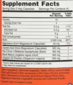 - المكونات الأخرى: هيبروميلوز (كبسولة سليلوز) ، سليلوز دقيق التبلور ، سيترات الكالسيوم ، حمض دهني (مصدر نباتي) وثاني أكسيد السيليكون.