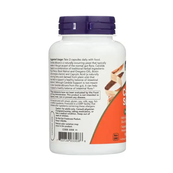 - حيث يعمل المكمل الغذائي NOW Candida Support على دعم وتعزيز صحة الأمعاء.