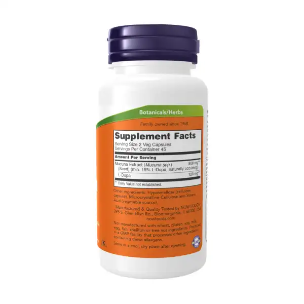 now Dopa Mucuna Brain Support Standardized Mucuna Extract Naturally Occurring 15% L-Dop 90 Veg Capsules الدوبامين لدعم وظائف المخ