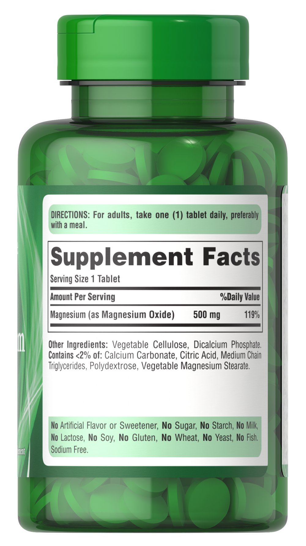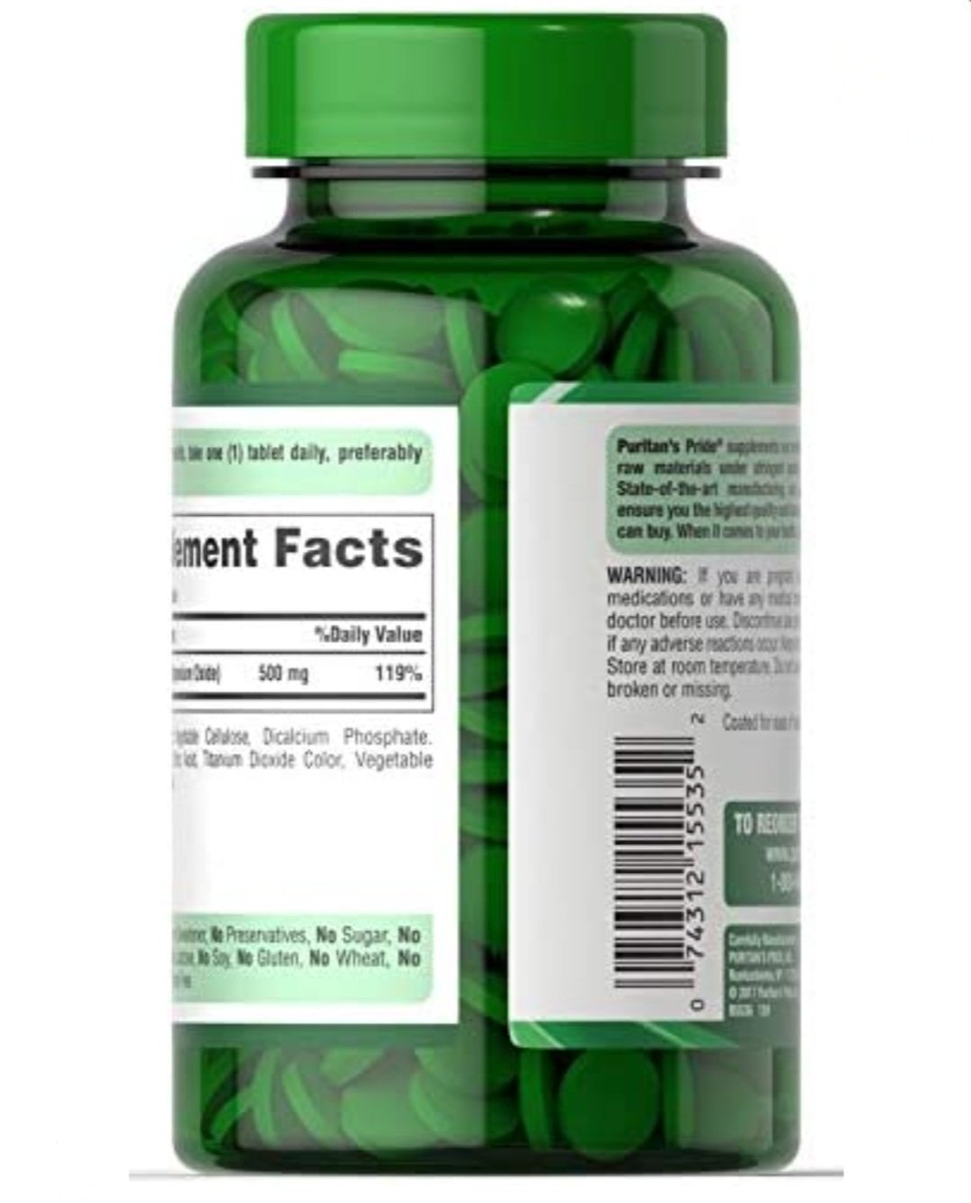 Puritans Pride Magnesium 500 mg 100 Tablets لدعم وظائف الأعصاب