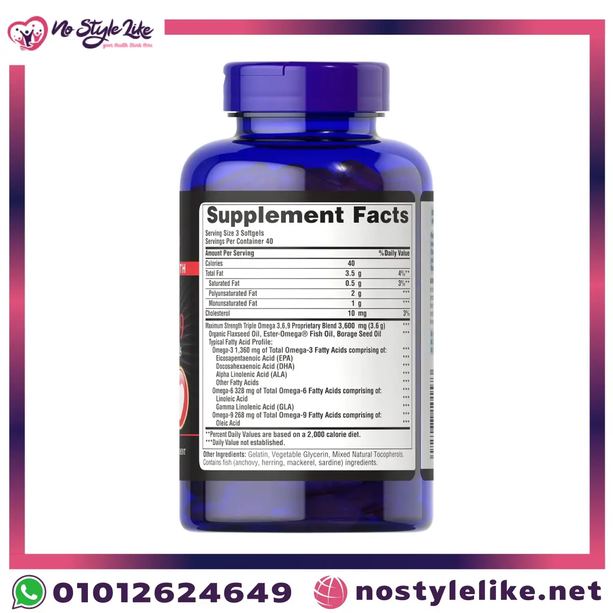 الاسم | Puritan’s Pride Triple Omega 3-6-9, 120 Softgels تريبل أوميجا 3-6-9 لتعزيز القدرات العقلية وصحة القلب |
