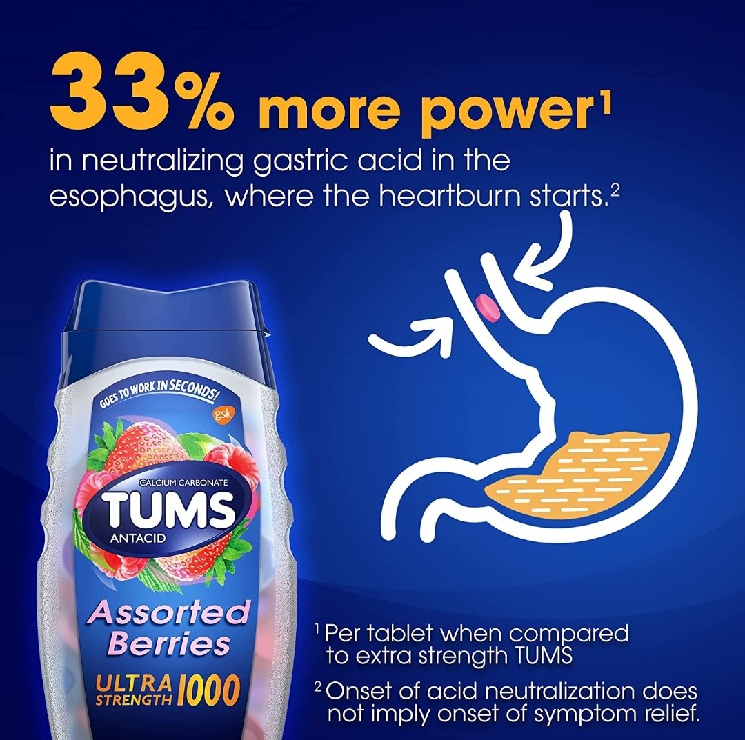 - TUMS antacid لها مفعول سريع ومريح للحرقان المعدة.
